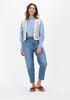 Conseil de taille Isabelle mesure 1 mètre 73 et porte la taille 27. L'ajustement est Mom.