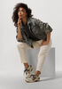Conseil de taille Charis mesure 1 mètre 73 et porte la taille s. L'ajustement est Seyant.