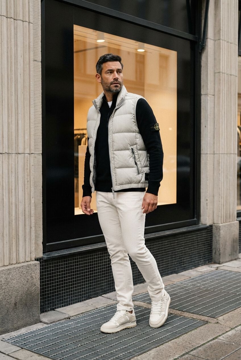 Model info: Damian est 1 mètre 87 long Longueur: 1 mètre 87 Pointure: 42Taille moyenne des vêtements d'extérieur: M Taille moyenne des sous-vêtements: M