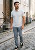 Conseil de taille Damian mesure 1 mètre 87 et porte la taille 32/34. L'ajustement est Regular fit.