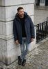 Conseil de taille Damian mesure 1 mètre 87 et porte la taille L. L'ajustement est Regular fit.
