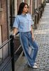 lichtblauwe alix the label ladies woven flowy denim shortsleeve blouse
