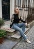 Maatadvies Dana is 1 meter 75 lang en draagt maat 27/32. De pasvorm is Regular fit.