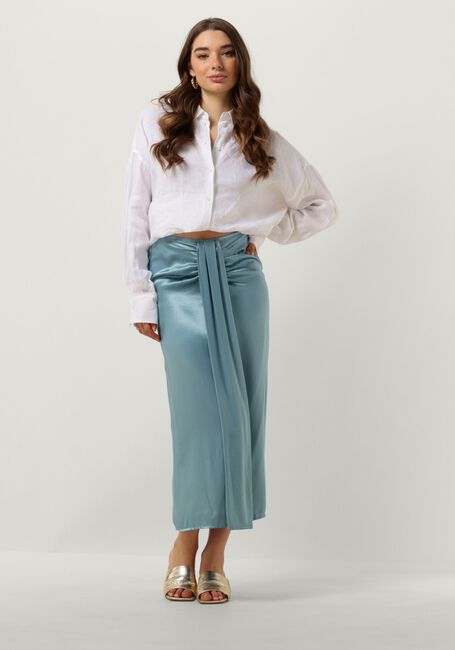 Met de 120012 midirok van GREEK ARCHAIC KORI straal je stijl en klasse uit. Deze lichtblauwe rok is gemaakt van satijn, waardoor hij een luxueuze uitstraling heeft. De half lange rok heeft een split aan de voorzijde, voor een speels effect. Combineer deze rok met een mooie blouse voor een chique look, of draag hem met een casual T-shirt voor een meer ontspannen uitstraling. Of je nu naar een feestje gaat of een dagje uit met vriendinnen, deze rok is perfect voor elke gelegenheid. Voel je zelfverzekerd en vrouwelijk in deze prachtige rok van GREEK ARCHAIC KORI.