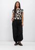 Voeg de crèmekleurige TOP BIG FLOWER van SUMMUM toe aan je lentecollectie en creëer een ingetogen, elegante uitstraling. Deze korte top in een frisse crèmetint, versierd met een opvallend zwart bloemenpatroon, is een echte blikvanger. Draag dit comfortabele model met ronde hals en korte mouwen tijdens een zonnige picknick in het park of een gezellig etentje op het terras. Combineer de top met een chique pantalon voor een verfijnde avondlook, of draag hem op een luchtige zomerrok voor een speelse, frisse uitstraling. Stel zo eenvoudig jouw perfecte voorjaarsoutfit samen.