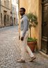 Maatadvies Ibrahim is 1 meter 88 lang en draagt maat 42. De pasvorm is Regular fit.
