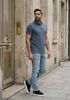 Maatadvies Damian is 1 meter 87 lang en draagt maat L. De pasvorm is Regular fit.