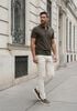 Maatadvies Damian is 1 meter 87 lang en draagt maat L. De pasvorm is Regular fit.