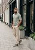 Maatadvies Damian is 1 meter 87 lang en draagt maat L. De pasvorm is Regular fit.
