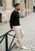 Maatadvies Damian is 1 meter 87 lang en draagt maat L. De pasvorm is Regular fit.