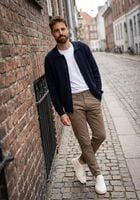 Je kent de frisse Scandinavische stijl wel uit de interieurwereld. Minimalisme, pure kwaliteit en heldere lijnen spelen de hoofdrol. De aandacht ligt vooral op materiaal en structuur en minder op kleur of bijzondere vormgeving. In de mode zie je deze clean-chique Scandinavische stijl ook steeds vaker. Denk aan lichte kleuren zoals wit, beige en grijsblauw, afgewisseld met zwart of camel. Natuurlijke hoogwaardige materialen zoals wol en katoen of mixen daarmee. Noordelijke elementen als kabels en mooie breisels met verfijnde details. Je ziet vooral hoekige lijnen, geen ruches of drukke prints. Omoda doet mee met deze tijdloze trend die je een relaxed-elegante uitstraling geeft.