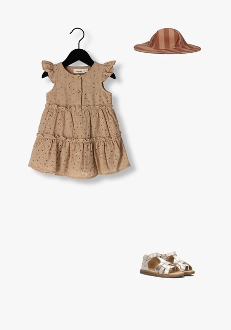 Laat je kleine meid stralen in deze schattige gouden sandalen van APPLES & PEARS. De BOO11989 sandalen zijn perfect voor zonnige dagen en zomerse avonturen. De sandaal is gemaakt van beige nubuck met wit en goudkleurige leer op de wreef. Op de voorvoet zit een geweven detail in combinatie met de goudkleurige bloemenprint, zijn deze sandalen een echte eyecatcher. De binnenkant is van heerlijk zacht leer en heeft een handige klittenband sluiting. Met deze sandalen kan ze lekker spelen in de tuin of flaneren over de boulevard. De sandalen hebben en gripvaste ondergrond door de rubberen zool. Combineer de sandaal met een schattige zomerjurk of een stoere denim short voor een complete look. Met deze sandalen is jouw kleine fashionista helemaal klaar voor de zomer!
