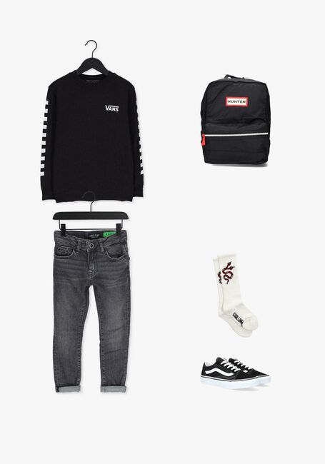 Deze lage sneaker UY OLD SKOOL is een van de bekendste modellen van het merk Vans. Deze zwarte skateschoen is uitgevoerd in suède en canvas en heeft een voering van textiel met een vast voetbed. Opvallende details zijn de bekende leren lijn op de zijkant en het merklabel op de hiel. De neus is verstevigd met een stootrand en geeft berscherming tegen slijtage. De gevoerde enkelkraag biedt ondersteuning en flexibiliteit en de rubberen zool met wafelprofiel biedt grip bij het lopen.