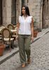 Maatadvies Lexi is 1 meter 75 lang en draagt maat 36. De pasvorm is Regular fit.